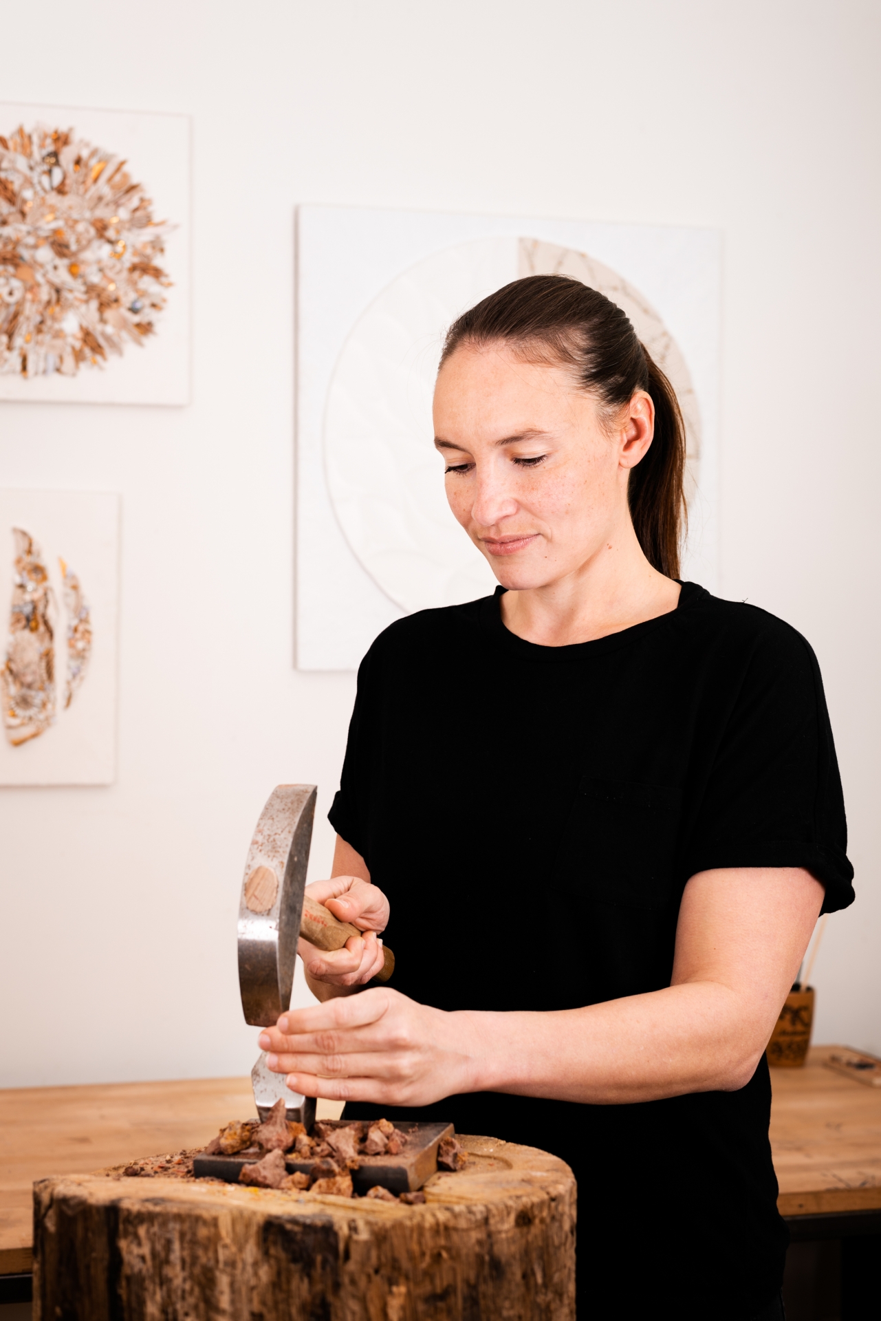 Eloïse découvre la mosaïque en 2010 et s’y consacre d’abord en autodidacte, jusqu’à sa rencontre décisive avec le maître mosaïste Enzo Tinarelli en 2012.